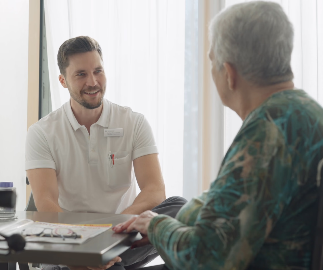 Bei der Arbeit in der Rehabilitation erlebst du die Entwicklung und Fortschritte der Patientinnen und Patienten über einen längeren Zeitraum mit und hast die Zeit, individuell auf ihre Bedürfnisse einzugehen – denn Rehabilitation ist auch Beziehungspflege.